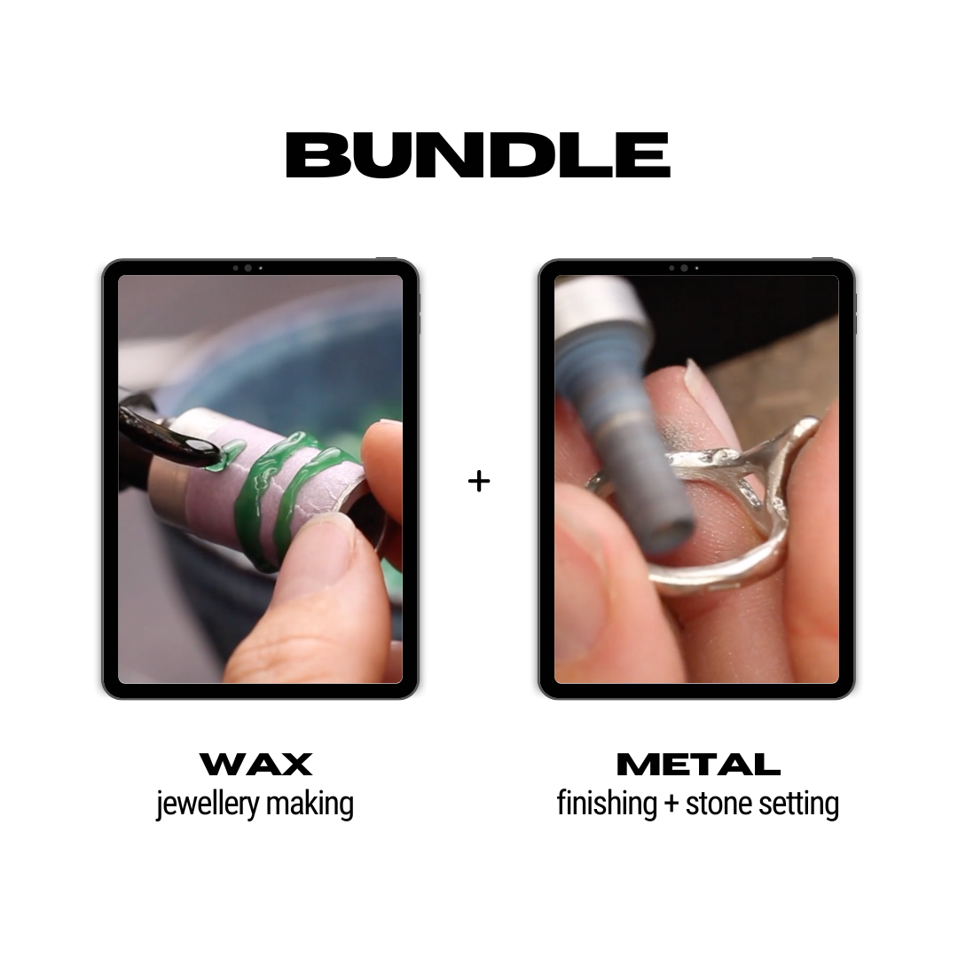 This bundle gives you access to the Wax Jewellery Making Course ($850) and the Metal Finishing and Stone Setting Course ($599) - Save $227